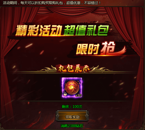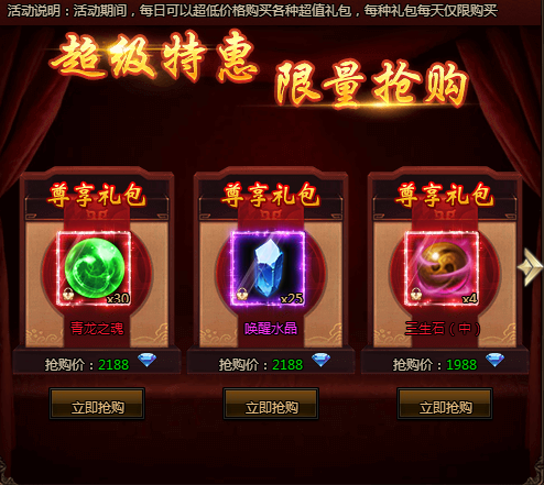活动期间,每日可以超低价格购买各种超值礼包,每种礼包每天仅限购买!