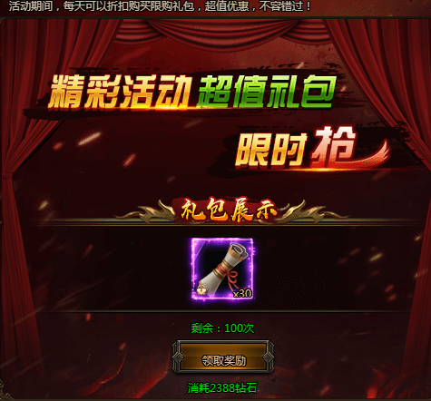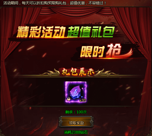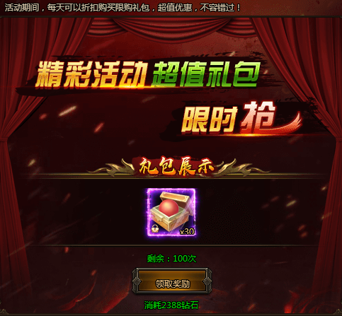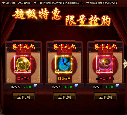 活动期间,每日可以超低价格购买各种超值礼包,每种礼包每天仅限购买!