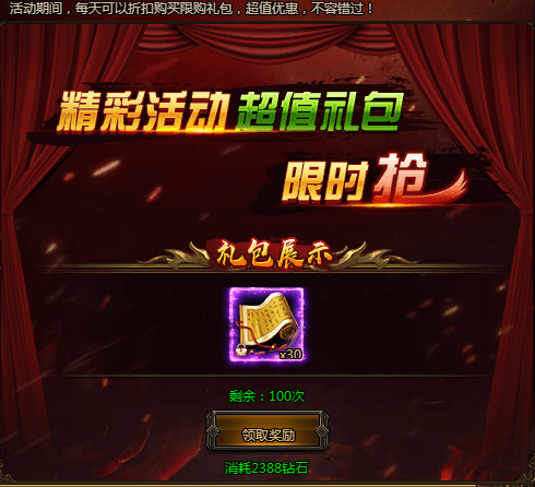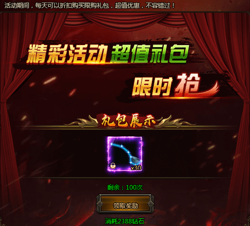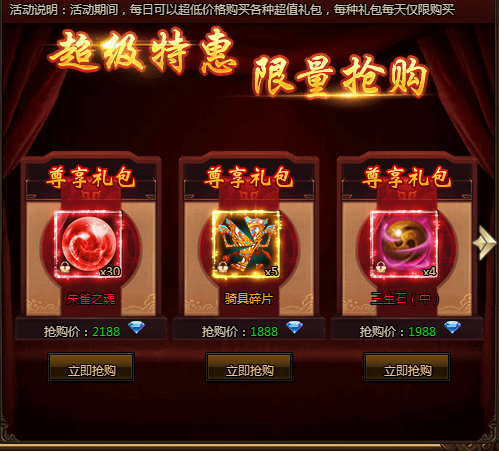 活动期间,每日可以超低价格购买各种超值礼包,每种礼包每天仅限购买!