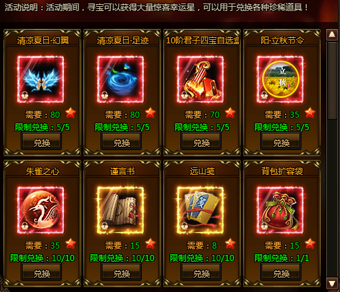 活动期间,寻宝可以获得大量惊喜幸运星,可以用于兑换各种珍稀道!