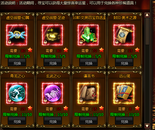 活动期间,寻宝可以获得大量惊喜幸运星,可以用于兑换各种珍稀道!