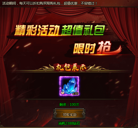 活动期间,每日可以超低价格购买各种超值礼包,每种礼包每天仅限购买!