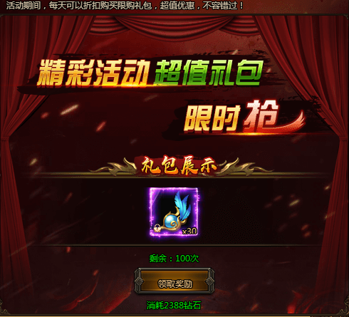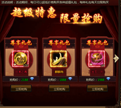 活动期间,每日可以超低价格购买各种超值礼包,每种礼包每天仅限购买!