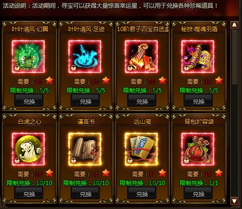 活动期间,寻宝可以获得大量惊喜幸运星,可以用于兑换各种珍稀道!