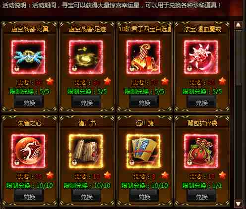 活动期间,寻宝可以获得大量惊喜幸运星,可以用于兑换各种珍稀道!