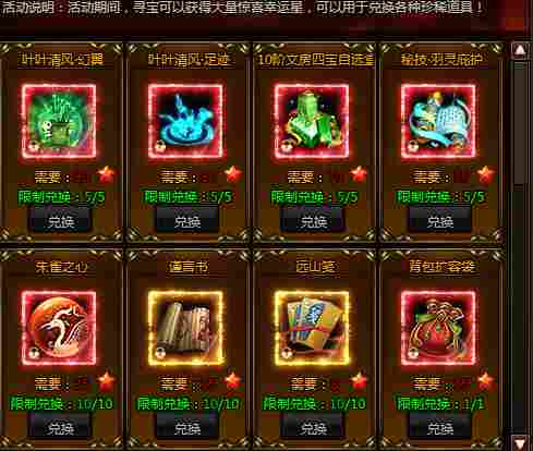 活动期间,寻宝可以获得大量惊喜幸运星,可以用于兑换各种珍稀道!