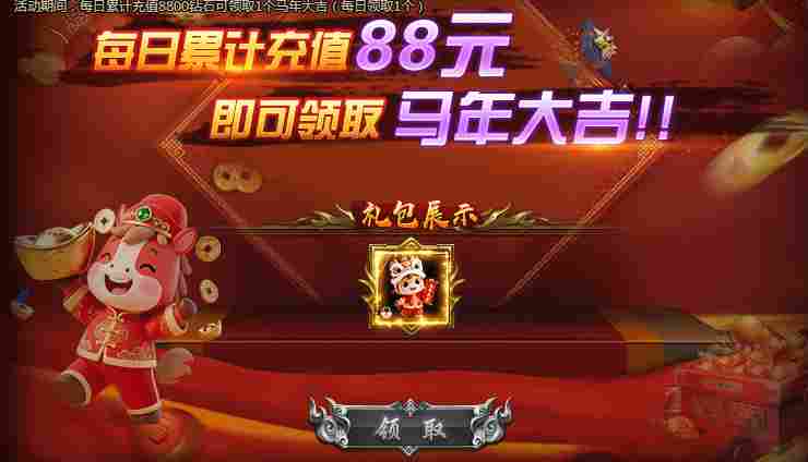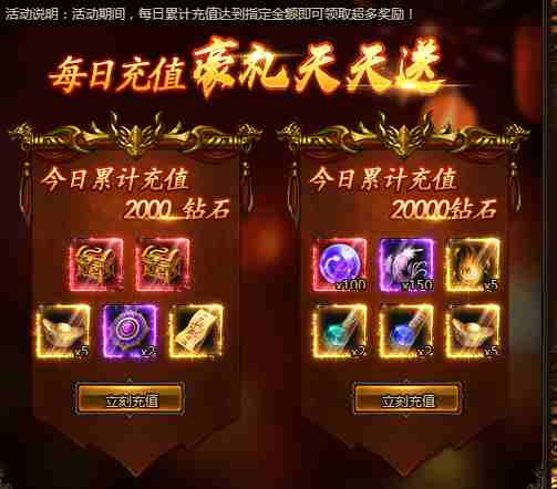 活动期间,每日累计充值达到指定金额即可领取超多奖励!