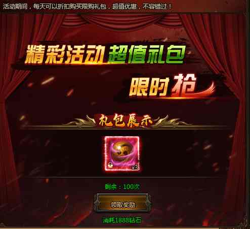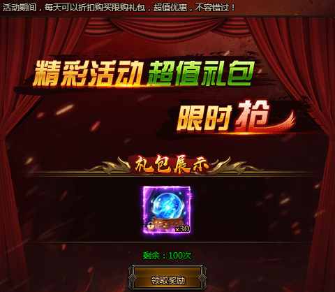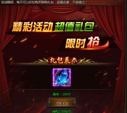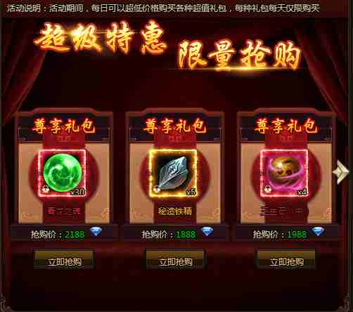 活动期间,每日可以超低价格购买各种超值礼包,每种礼包每天仅限购买!