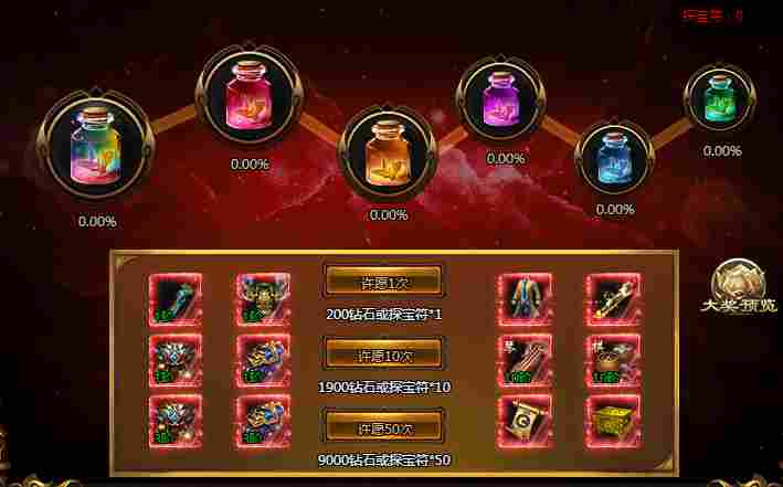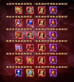 活动期间,许愿即可随机获得珍稀道具奖励且积攒许愿瓶进度,对应的许愿瓶进度满时,可一次性领取许愿瓶内所有奖!
