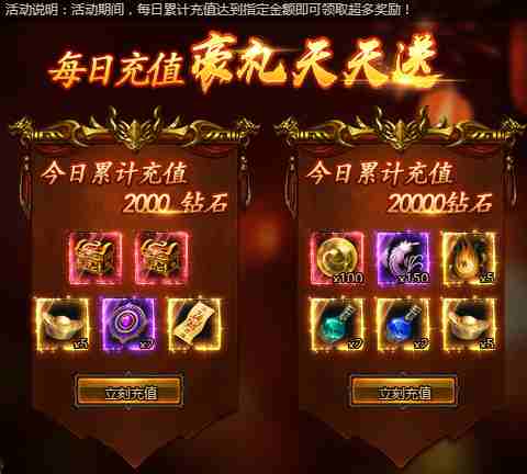 活动期间,每日累计充值达到指定金额即可领取超多奖励!