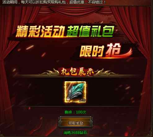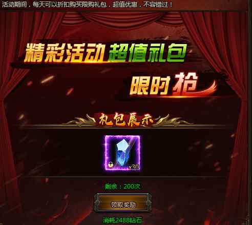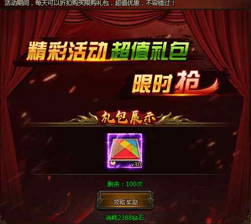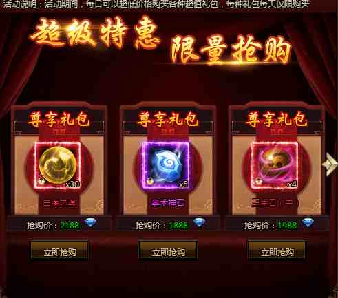 活动期间,每日可以超低价格购买各种超值礼包,每种礼包每天仅限购买!