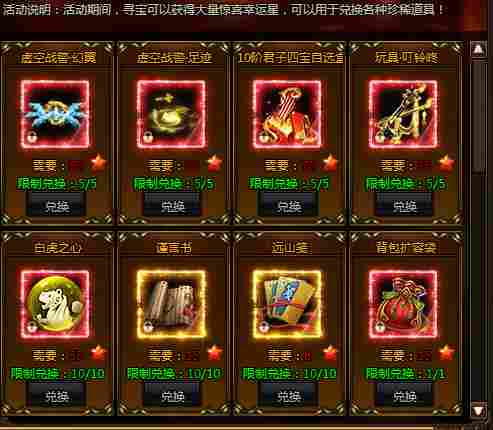 活动期间,寻宝可以获得大量惊喜幸运星,可以用于兑换各种珍稀道!